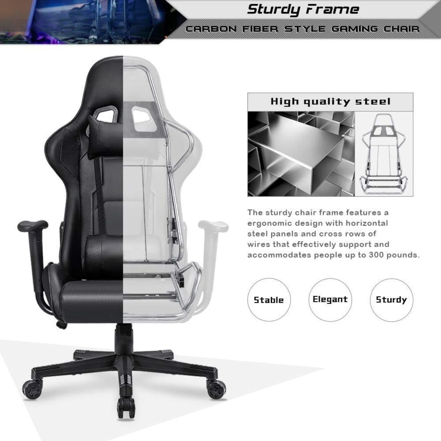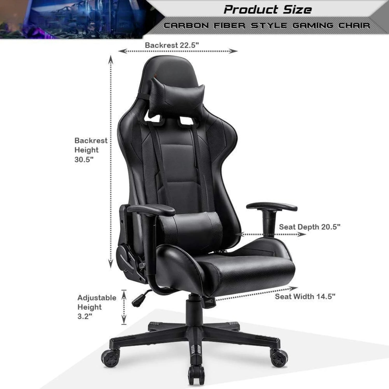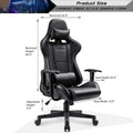 Combine performance and comfort with this dark black gaming and office chair. Designed with a racing-style silhouette, it features ergonomic support, a leather finish, and full swivel mobility. Perfect for gamers and professionals alike.