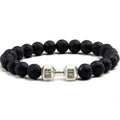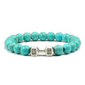 Natural round stone beads paired with a zinc alloy dumbbell pendant