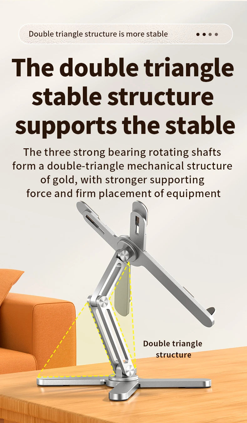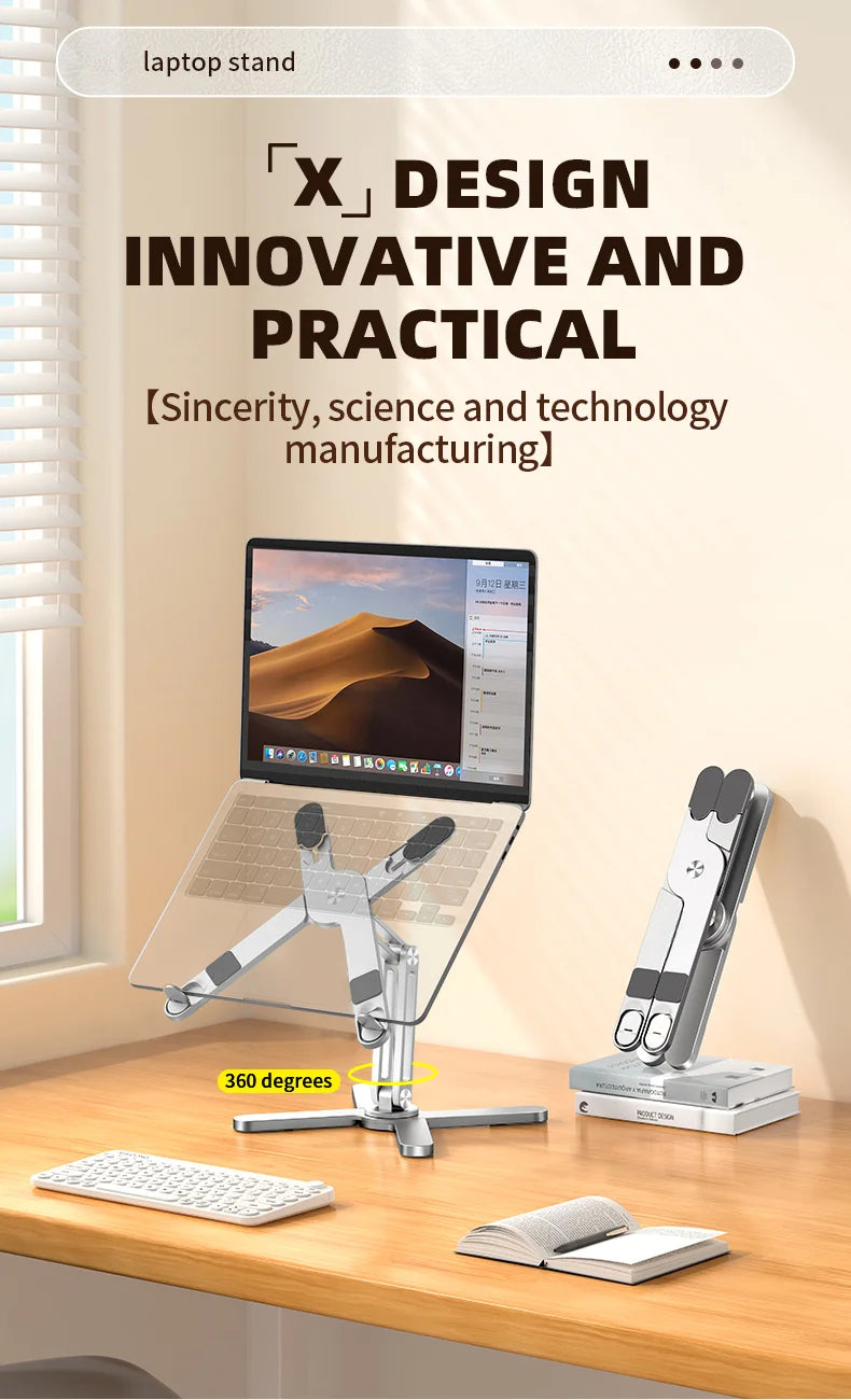 The YASOKO Foldable Laptop Stand is a portable and versatile aluminum alloy holder designed to support laptops, notebooks, tablets, and books with ease. Featuring 360° rotation and foldable design, it offers flexible viewing angles and compact storage. Its heat dissipation capability helps keep your device cool during use, enhancing performance and comfort. Key features include: